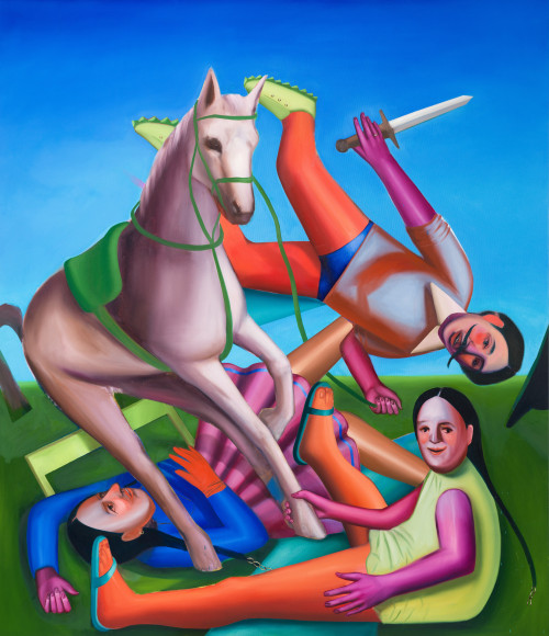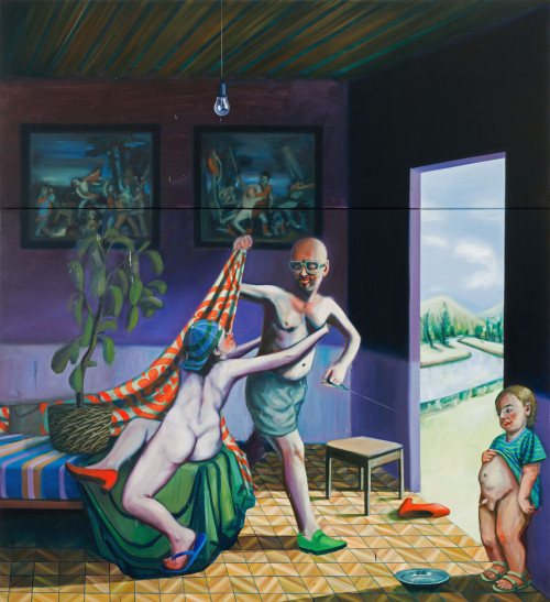 Ivana de Vivanco, is a Chilean-Peruvian artist currently based in Germany. Her practice conjures up theatrical scenes with uncanny atmospheres full of metaphors and sociopolitical references with a big influence from Latin American Baroque. Within her works she challenges preconceived notions of gender, Western-history and colonialism as well as power.
