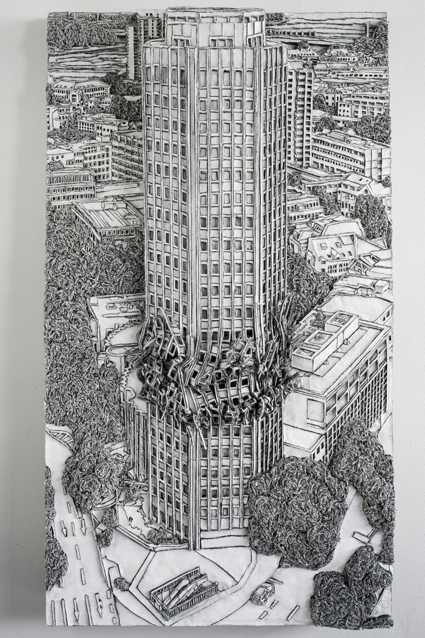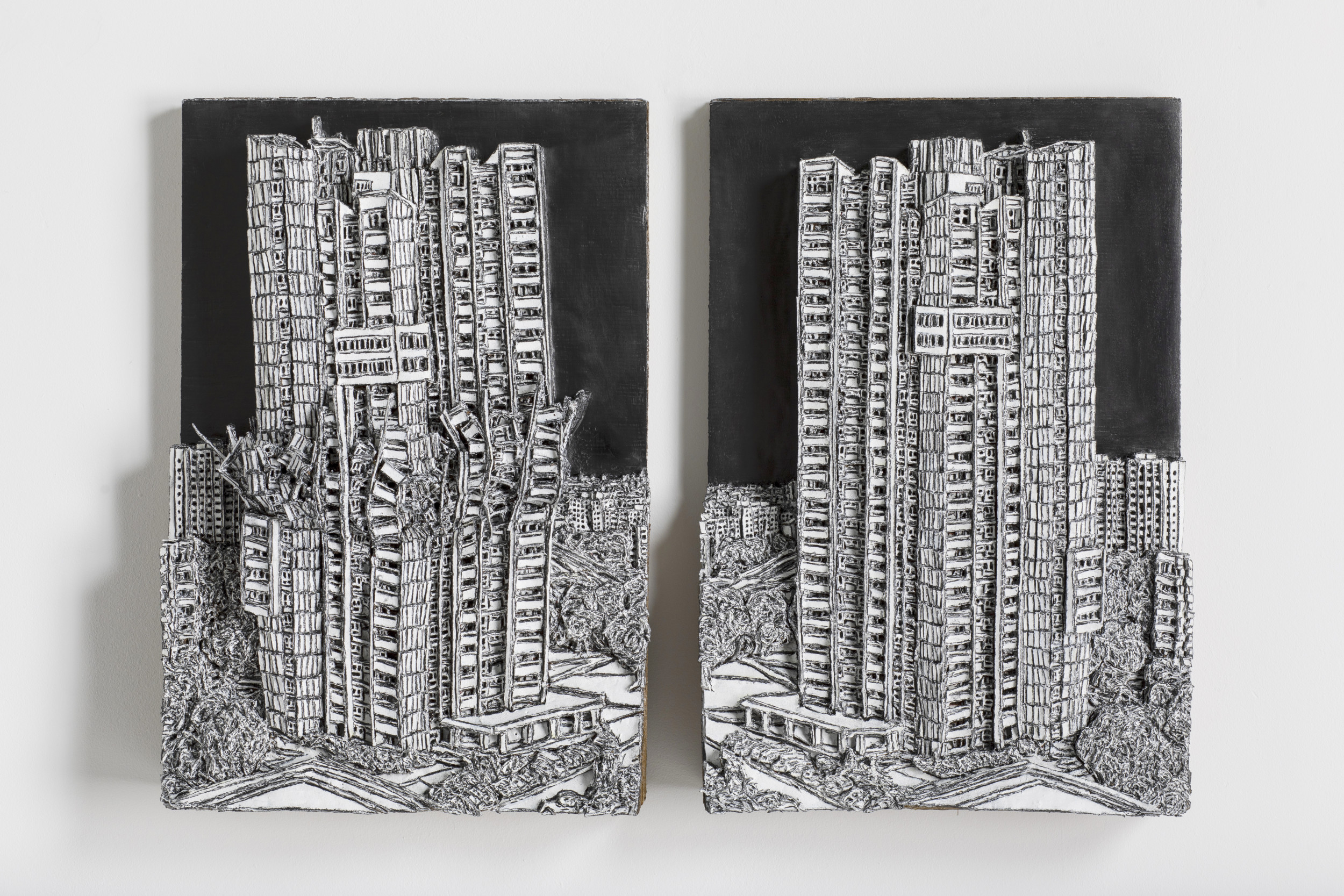 Martin Spengler explores structures and patterns of order. The motifs for his works – contemporary cityscapes, skyscrapers, facades, towers and Gothic cathedrals – he finds in image files and sketches that serve as models for detailed preliminary drawings. Spengler is especially interested in the temporality and the fragility of seemingly architecture, and its function to represent social utopias and boundaries.