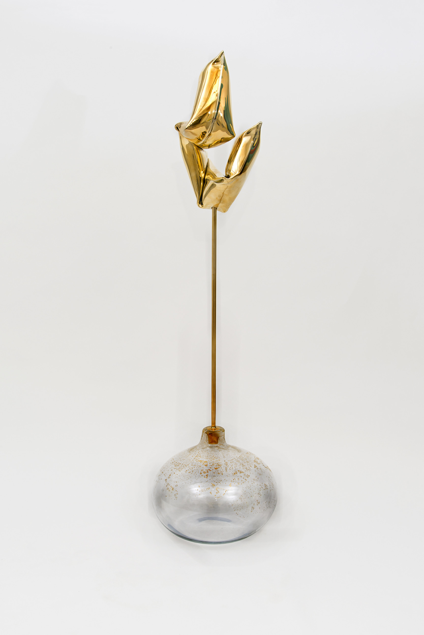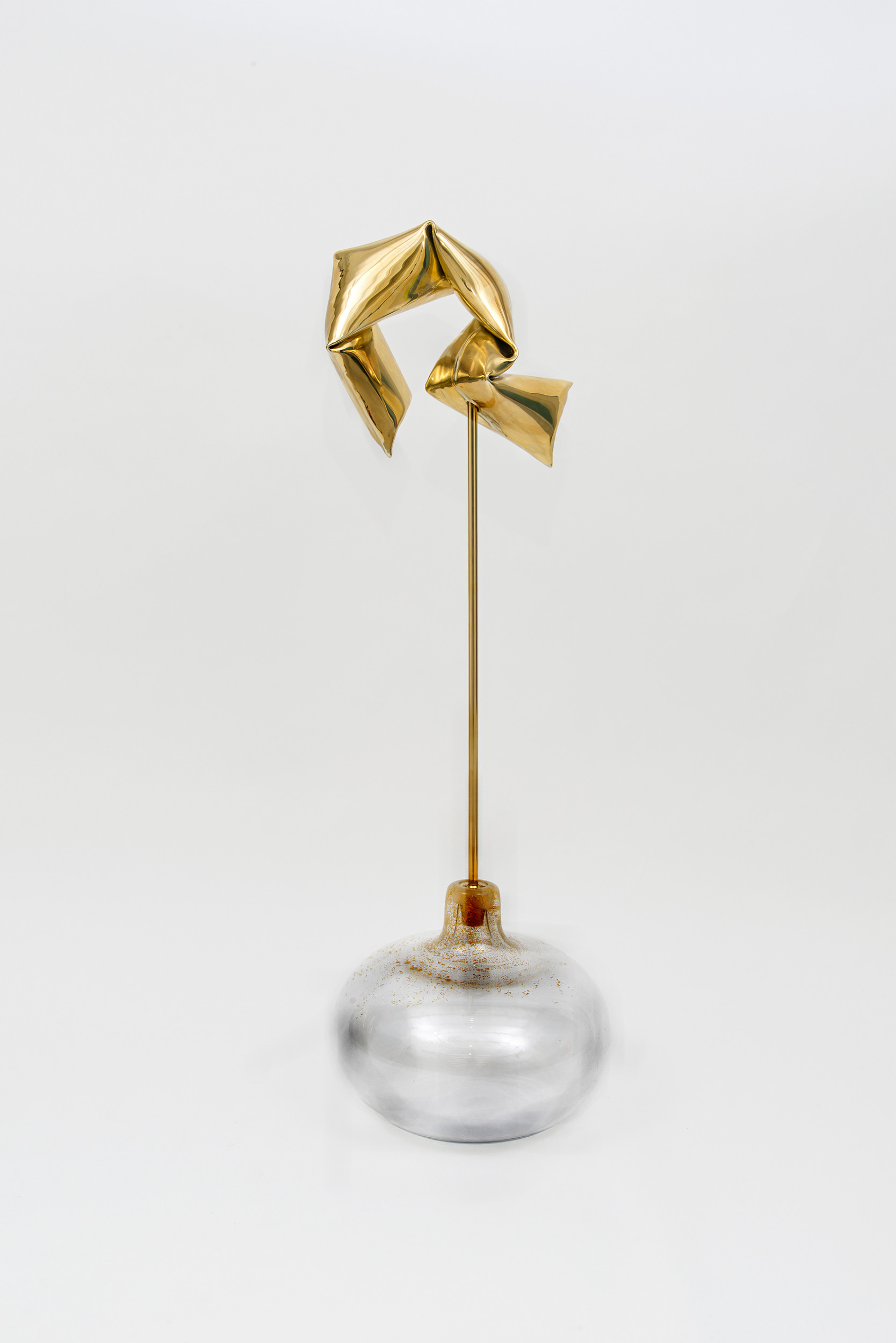 Nick Dawes creates complex colour arrangements with fluid forms and thus pursues a new quality of painterly abstraction. The ostensibly impulsive painterly gestures of his paintings are, however, achieved by an exact plan that leaves almost nothing to chance. The artist distils abstract forms from the formal particularities of road signs or other sign-like quotidian objects, which he then captures as pencil drawings and transfers to the canvas with thinned poured oil paint. In Susanne Roewer’s works, glass joins silver-plated bronze to such an extent that the transparent glass corpus adapts to the solid metal and thus reflects on its own process of formation. The glass is blown in temperatures over 1000 °C and shaped on the bronze corpus, and in its amorphous structure adjusts to the metal.